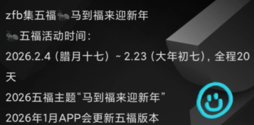 现在已经是一月中旬啦,距离过年也就不到一个月的时间了,支付宝的集五福活动马上也要开启了,作为每年的固定项目,玩起来也是很有意思的,那大家知道2026支付宝五福什么时候开始吗?下面就和小编一起来看看吧。