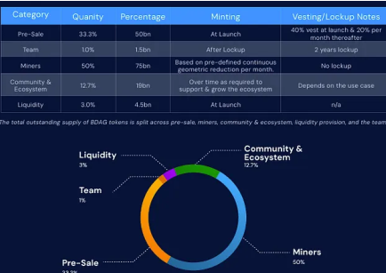 为了避免供应突然激增和价格剧烈波动,预售BDAG将逐步解锁:上市时解锁40%,然后在接下来的三个月内解锁剩余的60%。