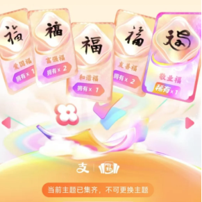 兑换心仪主题福卡:今年(2026年)支付宝推出了"万能稀有卡"作为早鸟活动的亮点。用户若在正式活动开启前抢到此卡,即可在2月3日主线活动开始后,兑换任意套IP主题的稀有福卡,相当于直接锁定"福卡自由”,无需再依赖随机抽取。