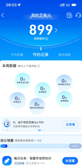 还好,不是很难,涨分很简单,明白其中一些原理后,每周涨2分,不是问题,多使用先用后付,免押借东西,总之就是守约。我每周会刷很多守约记录,所以都涨分了。