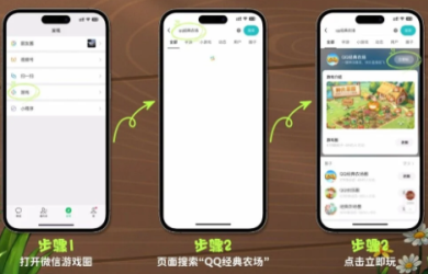 步骤1:打开微信游戏圈。步骤2:找到《QQ经典农场》游戏圈。步骤3:在游戏介绍页面点开游戏即可游玩。