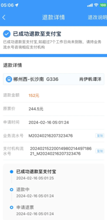 看下面的这个改签,一等座改二等座,扣40%两张票,扣了185元。