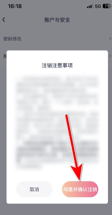 第五步:点击【同意并确认注销】选项,即可注销账号。