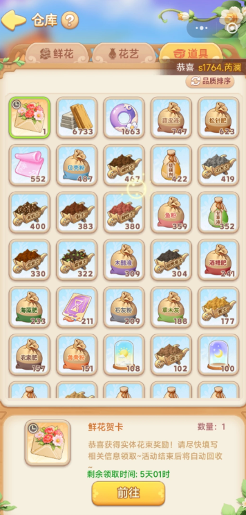 游戏里种的花真的收到啦!下午正上班接到电话说来送花了,谁懂这种惊喜啊!我的花园世界,我将一直拥护你!