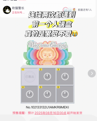 抽盒机按照预售时间会一波波放货,每一波之间会有时间间隙,蹲守直播间确认上一波售罄时间,然后回到图2页面反复退出进入,尝试几次基本就可以抢到啦