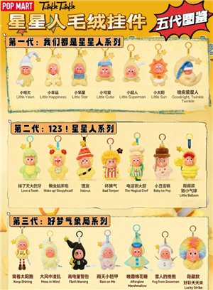 星星人盲盒,最新价格图鉴来啦!星星人毛绒挂件盲盒图鉴【共五代】想买的娃友不迷路,快来看看自己喜欢的娃吧!