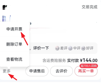 最近买的可以直接在订单-更多-申请开票,抬头个人(或者你想写的话随便写不能骂人)