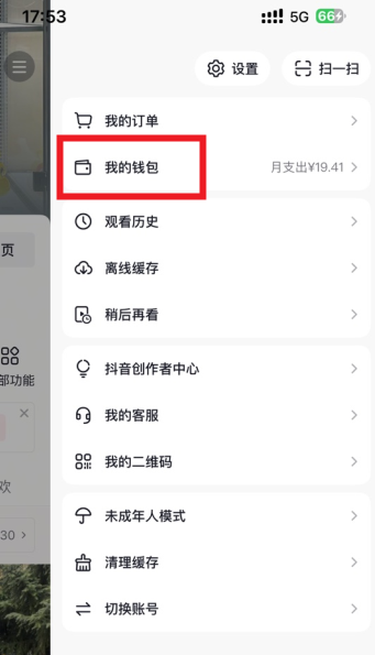 1,打开抖音app,点击底部的【我】--点击右上角的三条杠进入,点击钱包;
