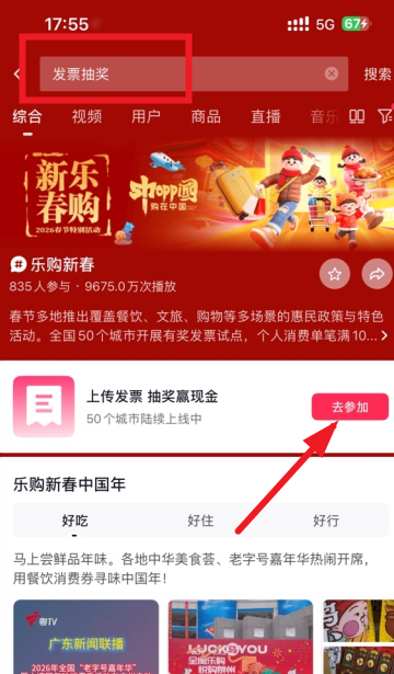 除了上面的方法进入之外,还可以直接搜索【发票抽奖】,然后点击去参加就行了哈;