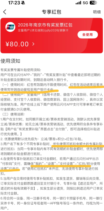 2,支付时只要绑定了到账的银行卡,就可以按支付顺序使用,立减/票券→积分→红包/补贴