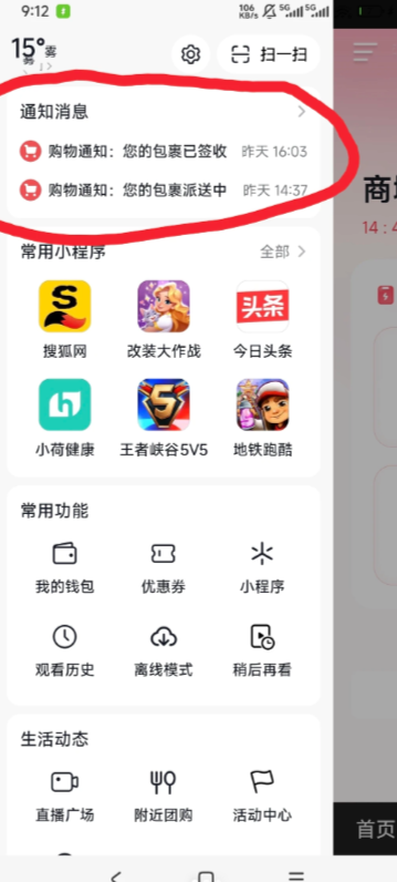 1、点首页左上角三道杠那里,看通知消息