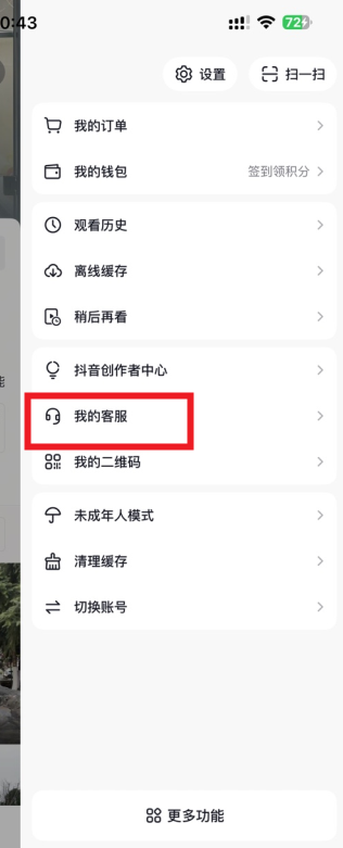 4,如果想看自己有没有中奖的话,点击抖音右下角的我-右上角的三条杠,进入之后点击我的客服进入;