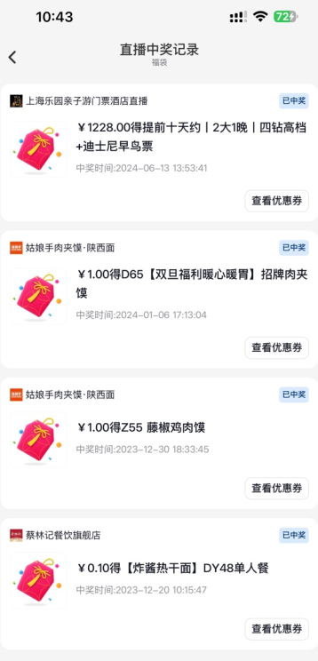 3、进入之后就可以看到参与的福袋以及中奖信息;
