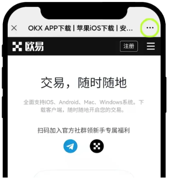 注:如果不是用浏览器扫码,则可能需要点击右上角图标,选择【在浏览器打开】,再点击【下载欧易App】,按要求完成下载、安装。