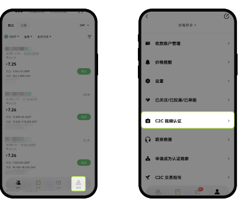2)视频认证需要在【C2C买币】中进行,打开欧易 App 首页,点击【买币】-【C2C 买币】-【我的】-【视频认证】-【开始录制】。视频认证时,请确保开启声音,打开摄像头,不要连接耳机。系统会朗读风险提示,您不需要跟读。确认信息无误后,请您在“嘀”声后回答【是的】,然后提交资料,等待审核。