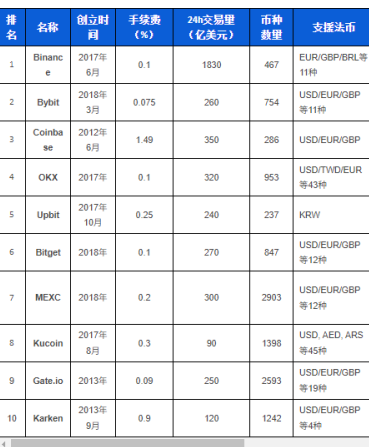 根据CMC显示,评分名列前十的交易所如下: