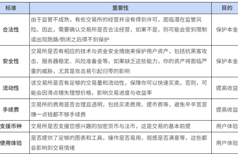 考虑合法性与安全性问题,旨在降低亏损的可能性,保证本金安全,这是关键与前提,因为没有本金就不用考虑其他问题。流动性与手续费,意在降低费用,提高交易手续费。当然,这一点比较有限,要想大幅度提高收益率,主要取决于个人的交易能力。此外,界面友好与币种数量,解决的是用户体验问题,也是用户比较在意的标准。