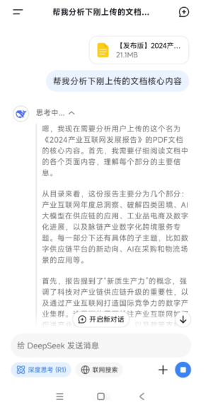 借助这一功能,DeepSeek能瞬间总结出几十页文档内容的答案,效率之高令人难以置信。以往可能需要花费几个小时阅读并做笔记的内容,现在DeepSeek几秒钟就能帮你完成。