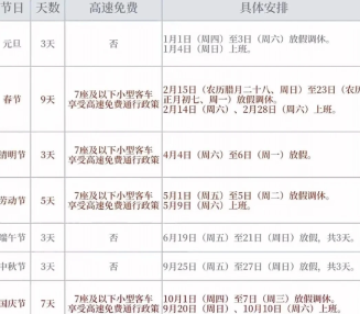 高速免费政策: 仅针对春节、清明、劳动节、国庆节四个法定假日。